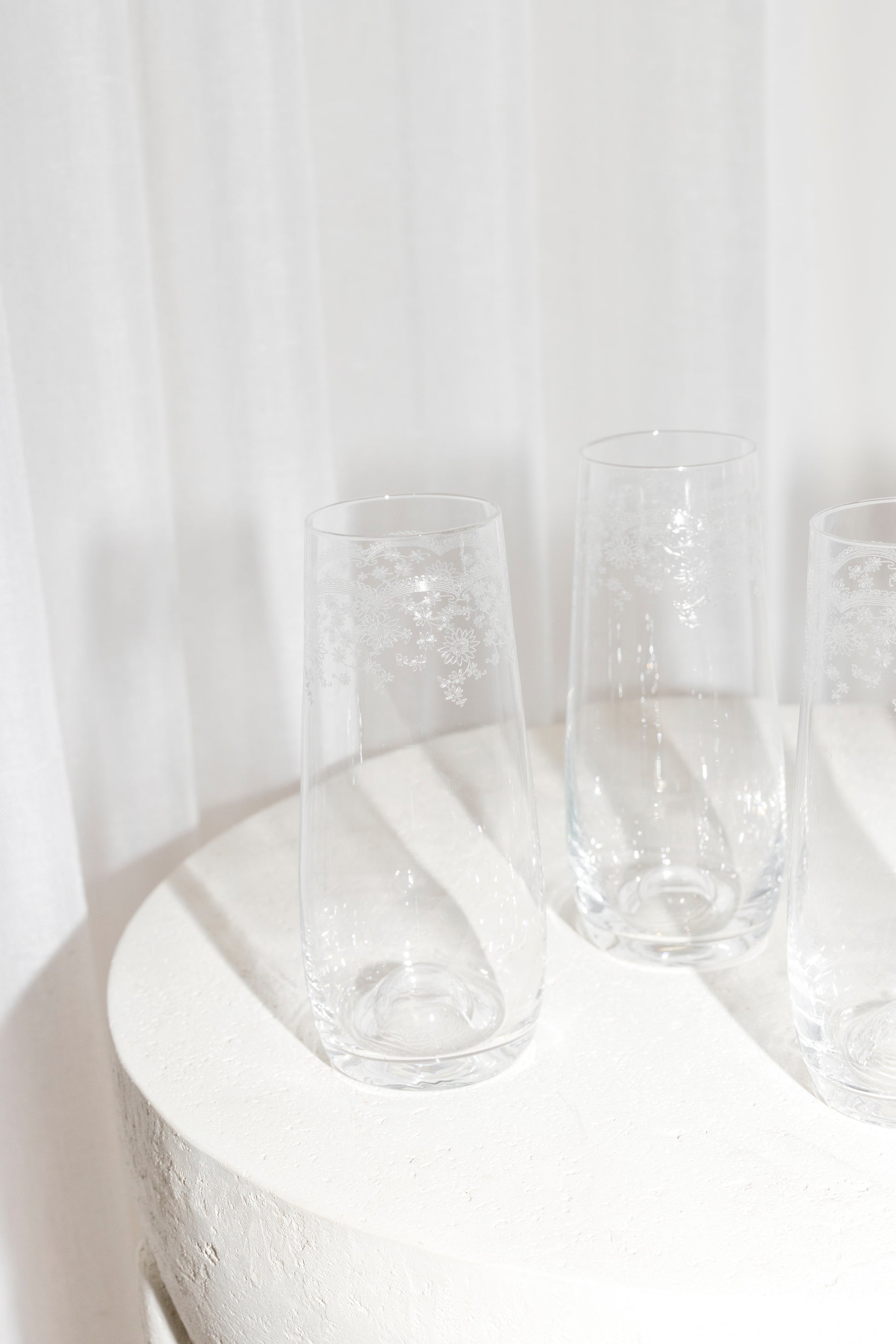 Etched Floral Stemless Champagne Glasses | Set of 4
