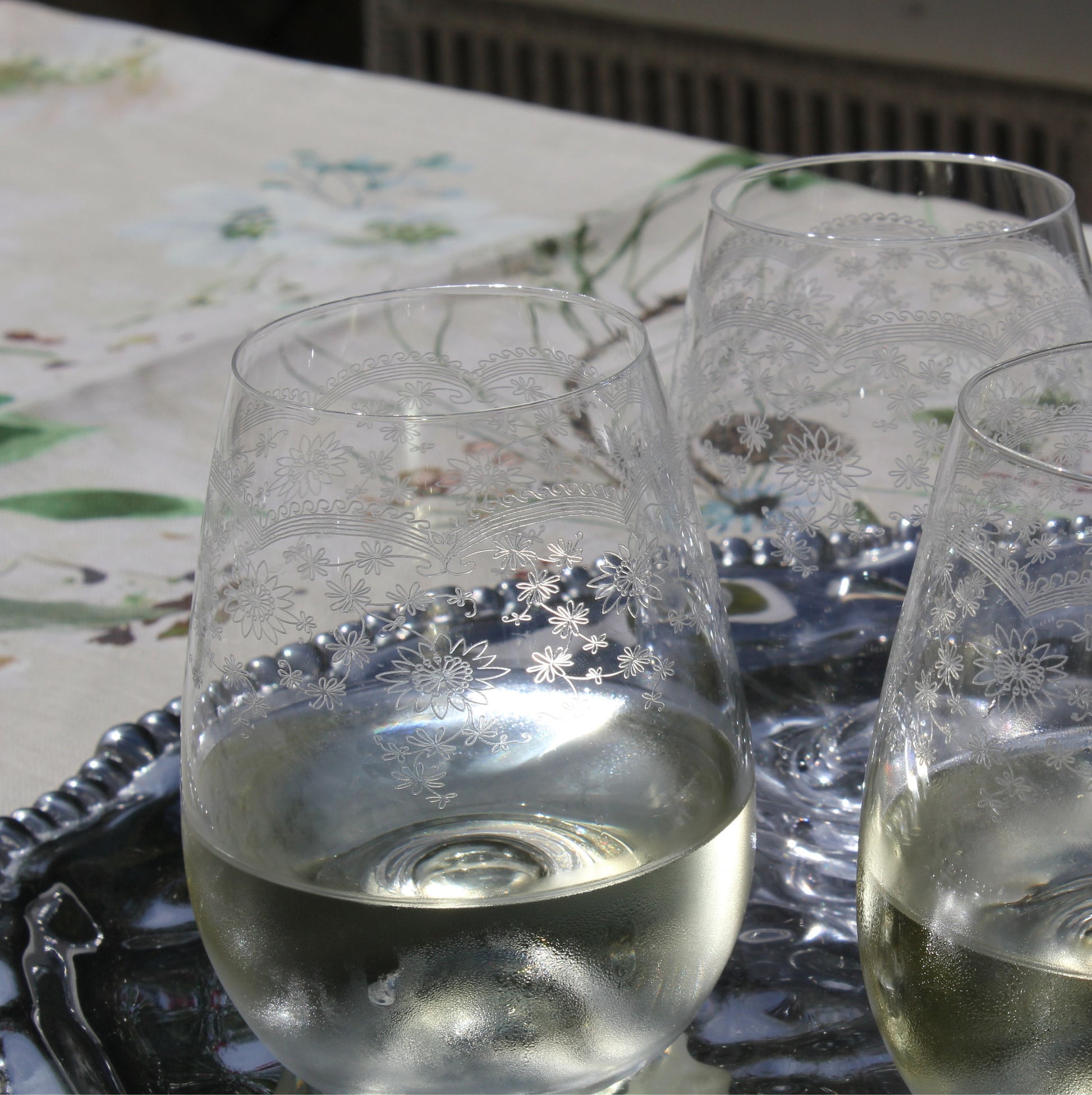 To add refinement to a table of indulgence, we extend glassware etched with botanicals and made with care in Slovakia.