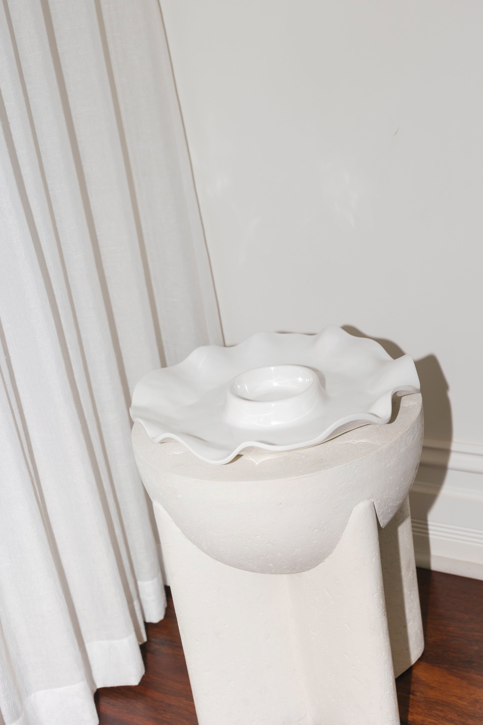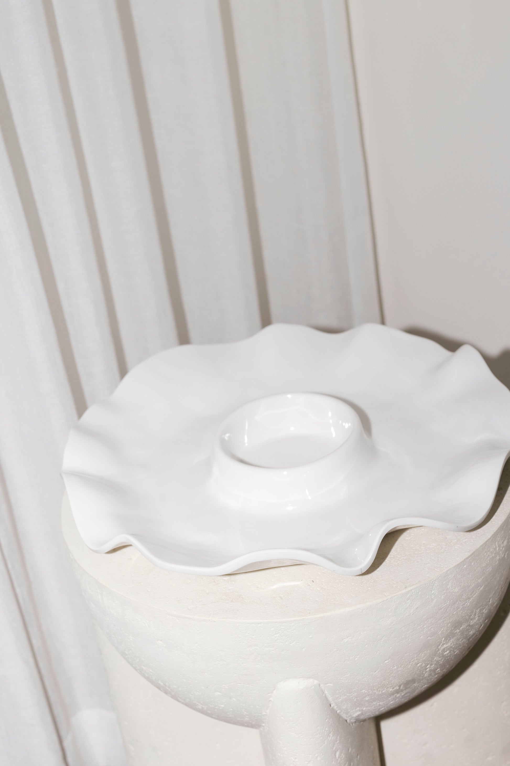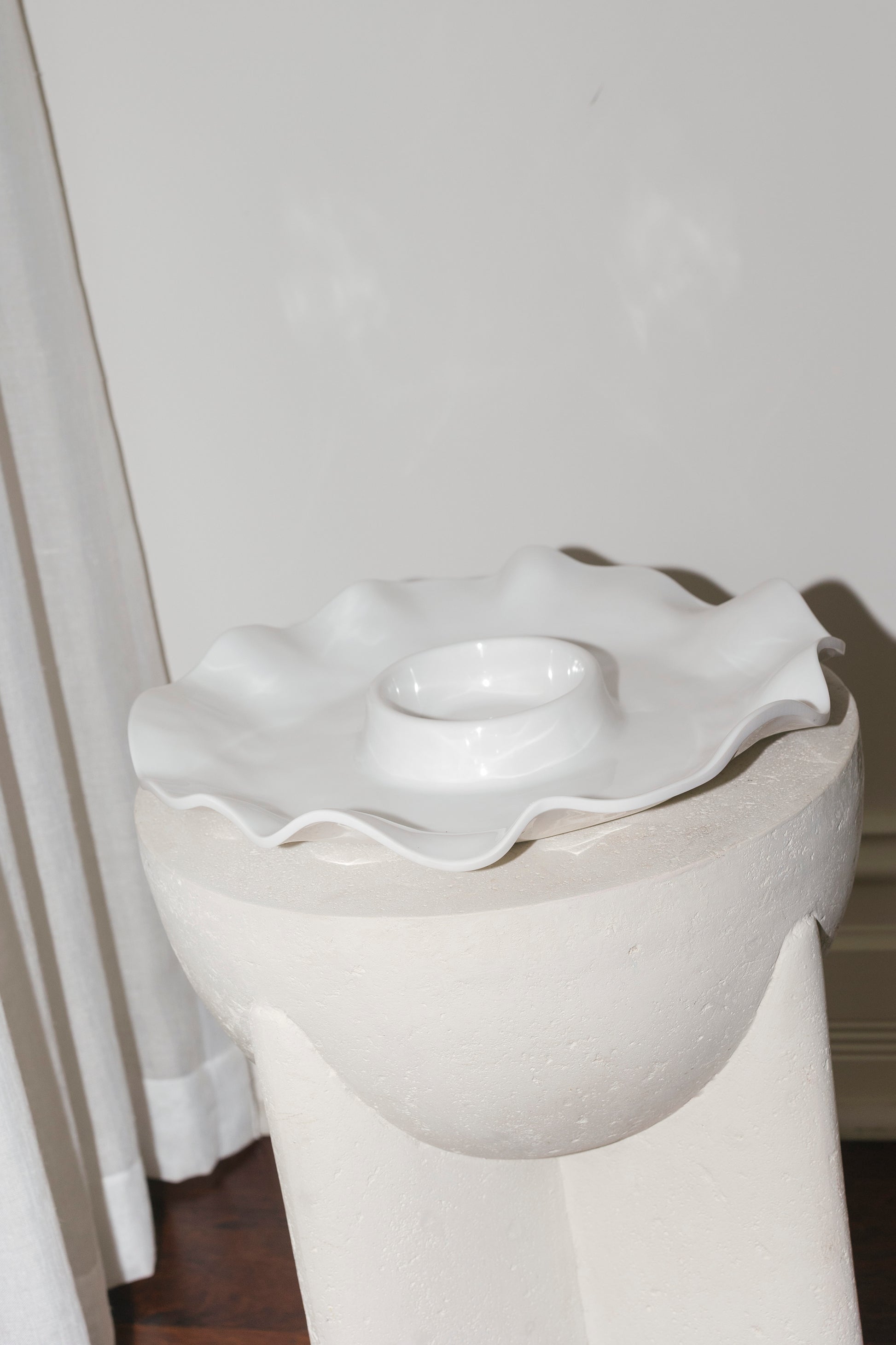 A serving piece made for easy entertaining. The Havana White Chip & Dip features the soft, fluted curves this collection is known for, with a generous outer section for chips or crudités and a built-in bowl for your favourite dip.