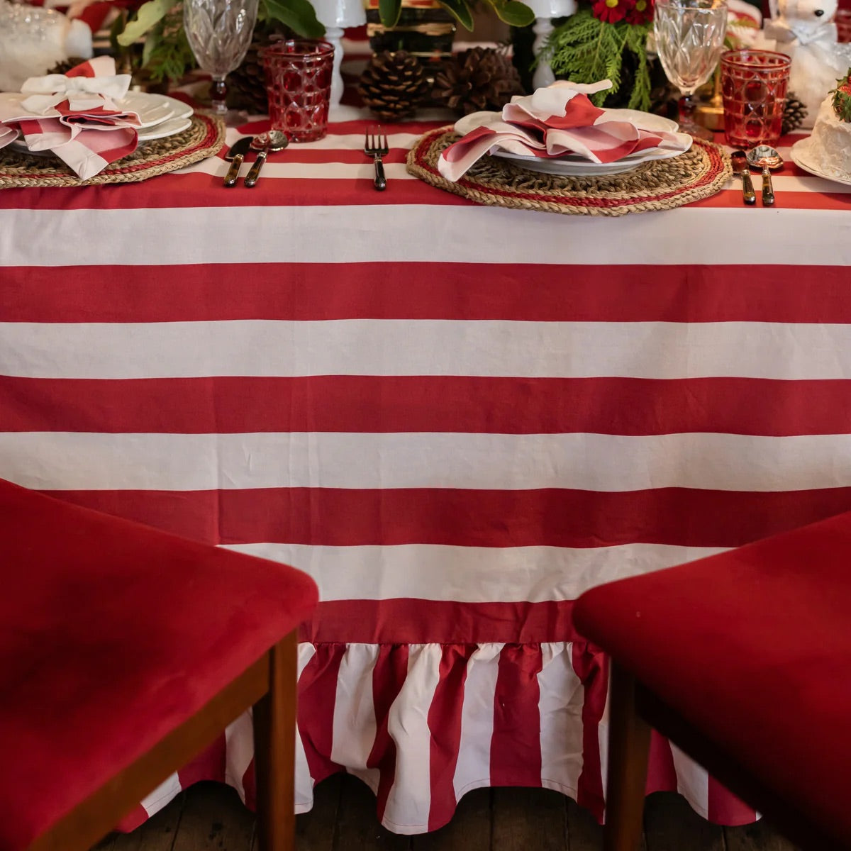 Bring on your festive joy with this gorgeous Red Stripe tablecloth. Made from 100% cotton and designed by Luxe and Beau.